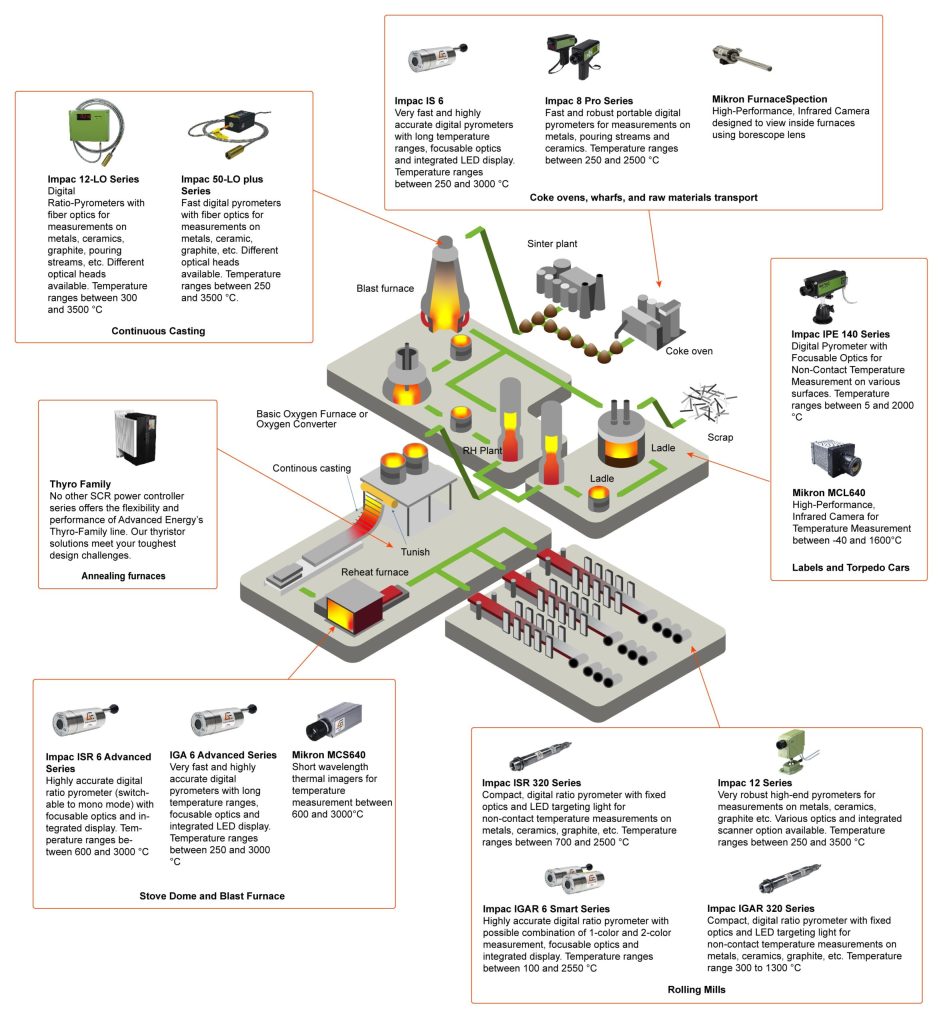 The metal manufacturing process requires accuracy at every stage and is a highly precise process; from oven heating to hot rolling and forging. Utilising non-contact temperature measurement offers visibility of specific parameters, systems and equipment settings allowing for improved product quality and cost-efficiencies.